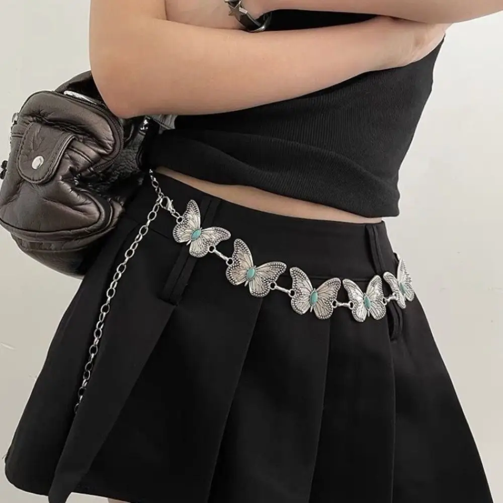 Add a refined touch to your look with the Aurelia Butterfly Waist Chain. Designed with a delicate silver-tone finish and subtle butterfly detail, this piece brings a soft bohemian elegance to any outfit. Perfect for styling over dresses or elevating everyday wear